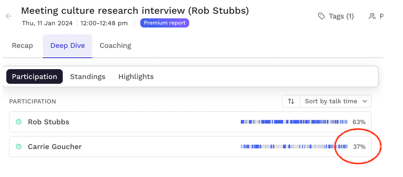 record who spoke most and least, who dominated the conversation (I was a bit shocked to learn that in some of my interviews, I talked for nearly 40% of the time - eeek!)
